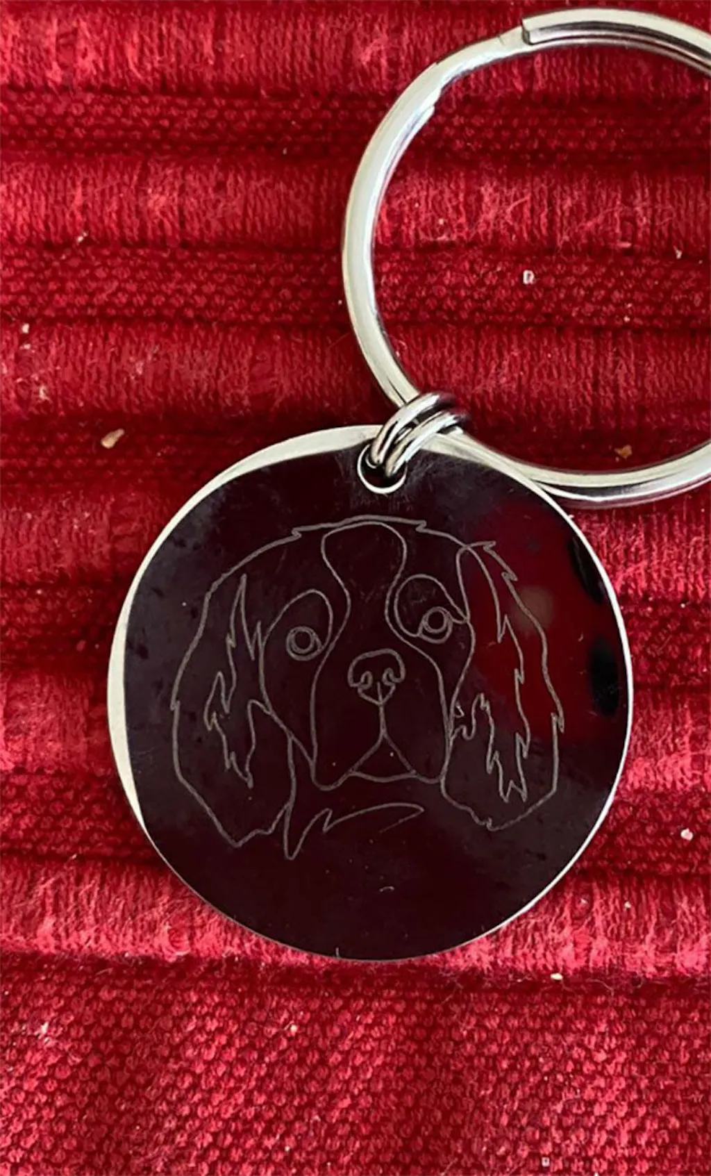 Dieser Schlüsselanhänger bietet eine große Fläche für die Gravur von der Pfote, Nase oder Gesicht deines Lieblings. Auf der Rückseite gravieren wir kostenlos den Namen deines Vierbeiners.