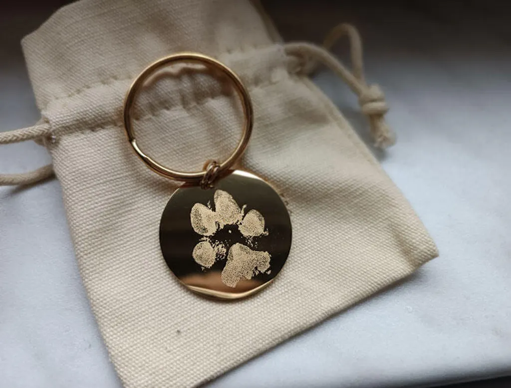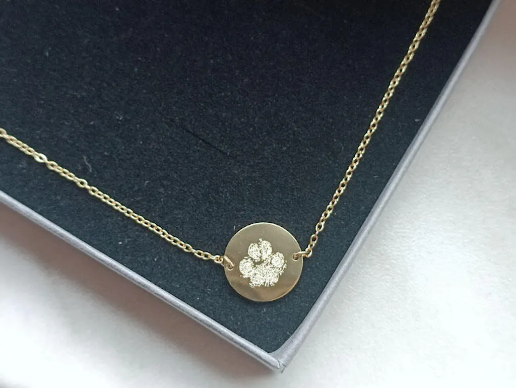 - Pfote Tintenabdruck: Hier gravieren wir die Pfote deines Vierbeiners als "3D-Abbild" auf dein Schmuckstück.